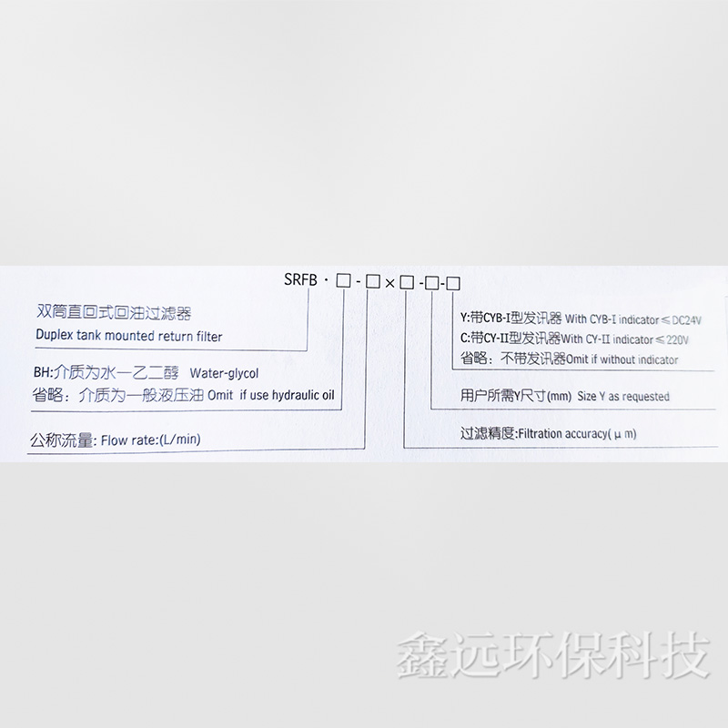 SRFB-100×10FY/C雙筒直回式回油過濾器型號說明: