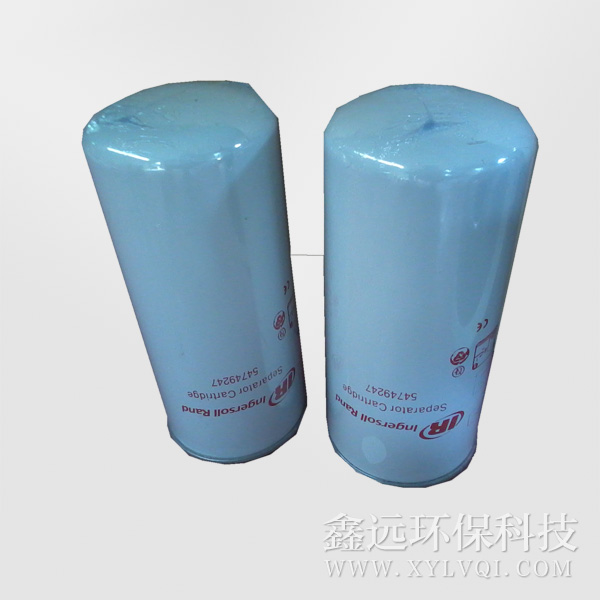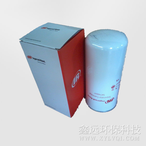 英格索蘭油氣分離濾芯54749247 從空壓機出來的壓縮空氣夾帶大大小小的油滴,大油滴通過油氣分離器易于分離,而小油滴(懸浮油微粒)則必須通過油氣分離器的微米級玻纖濾料層過濾。